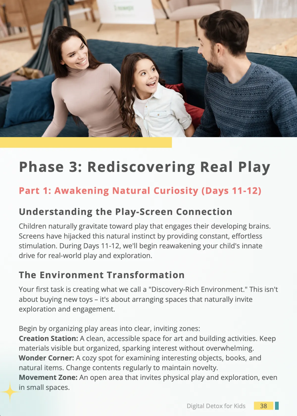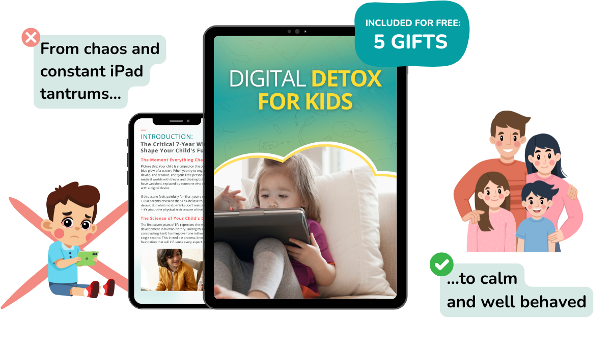 I cried reading the intro because it felt like my story. My 5-year-old had become so withdrawn and cranky without her tablet. Within the first week, she started asking to “play pretend” again. The connection exercises were gold — it feels like we’ve reconnected on a soul level.